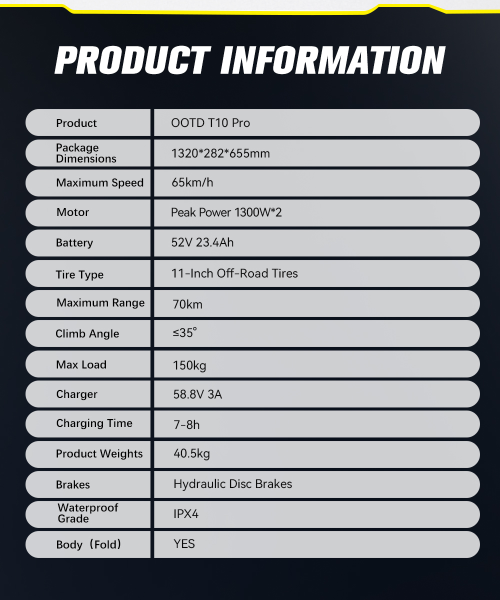OOTD T10 Pro Electric Scooter | 23.4AH Battery | 1300W*2 Power